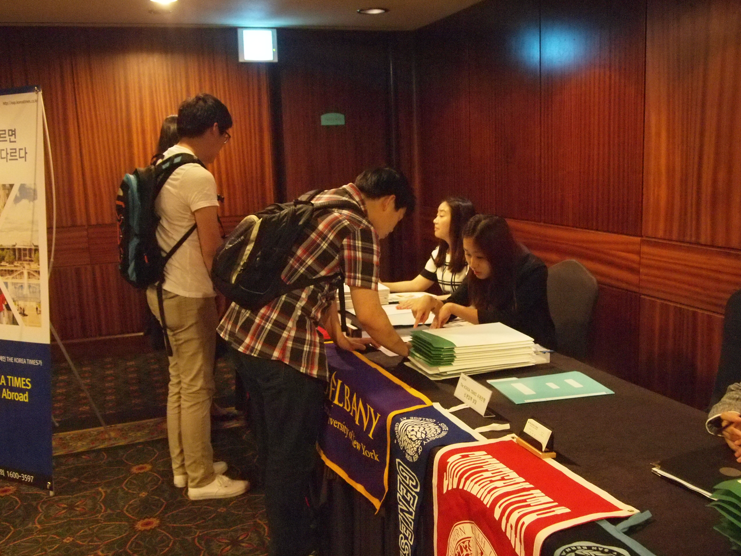 설명회 시작 전 참석자 분들의 예약명단을 확인하고 있는 모습입니다.