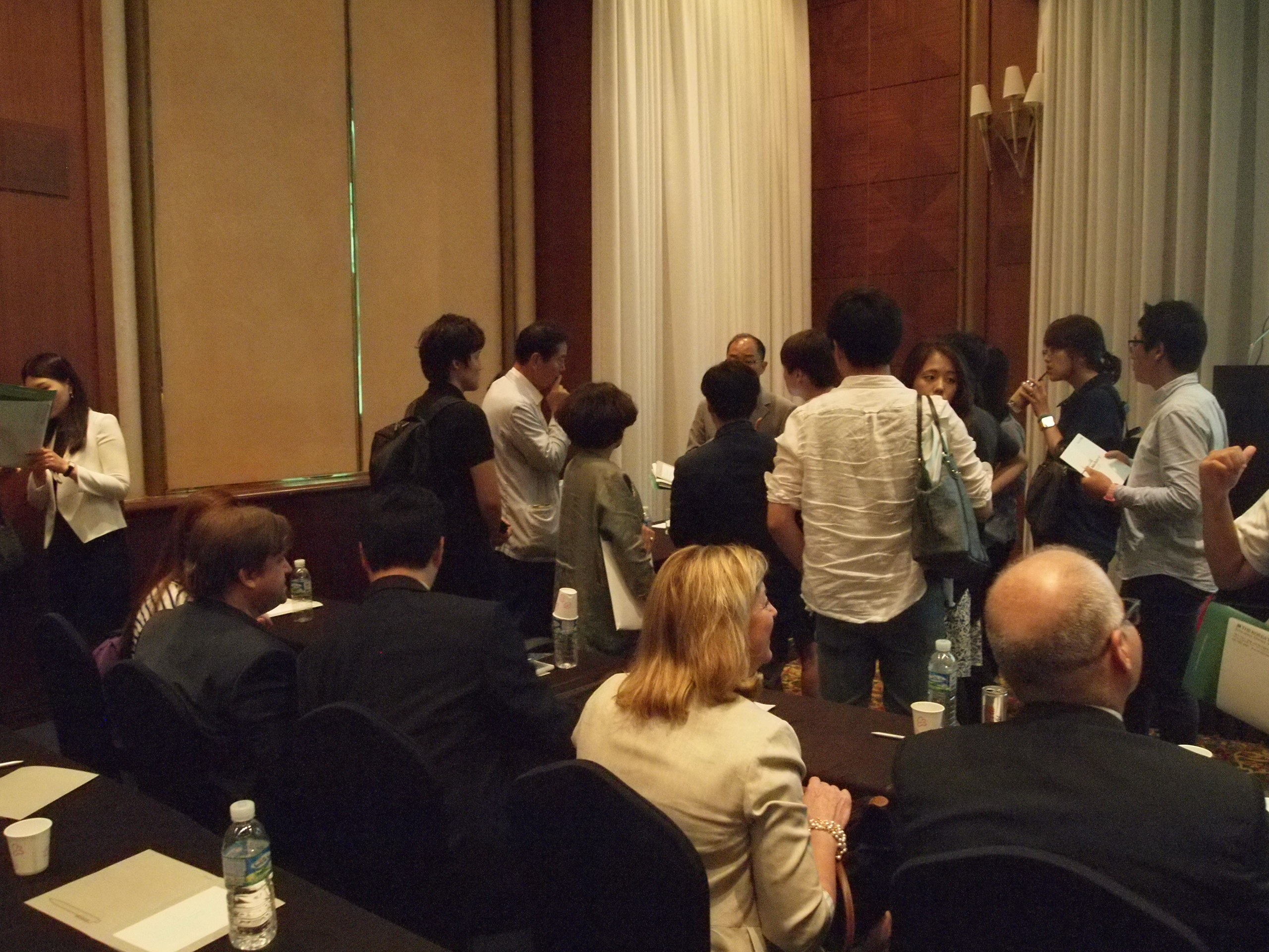 설명회 종료 후 추가 문의사항에 대해 개별 상담을 진행하고 있는 모습입니다.