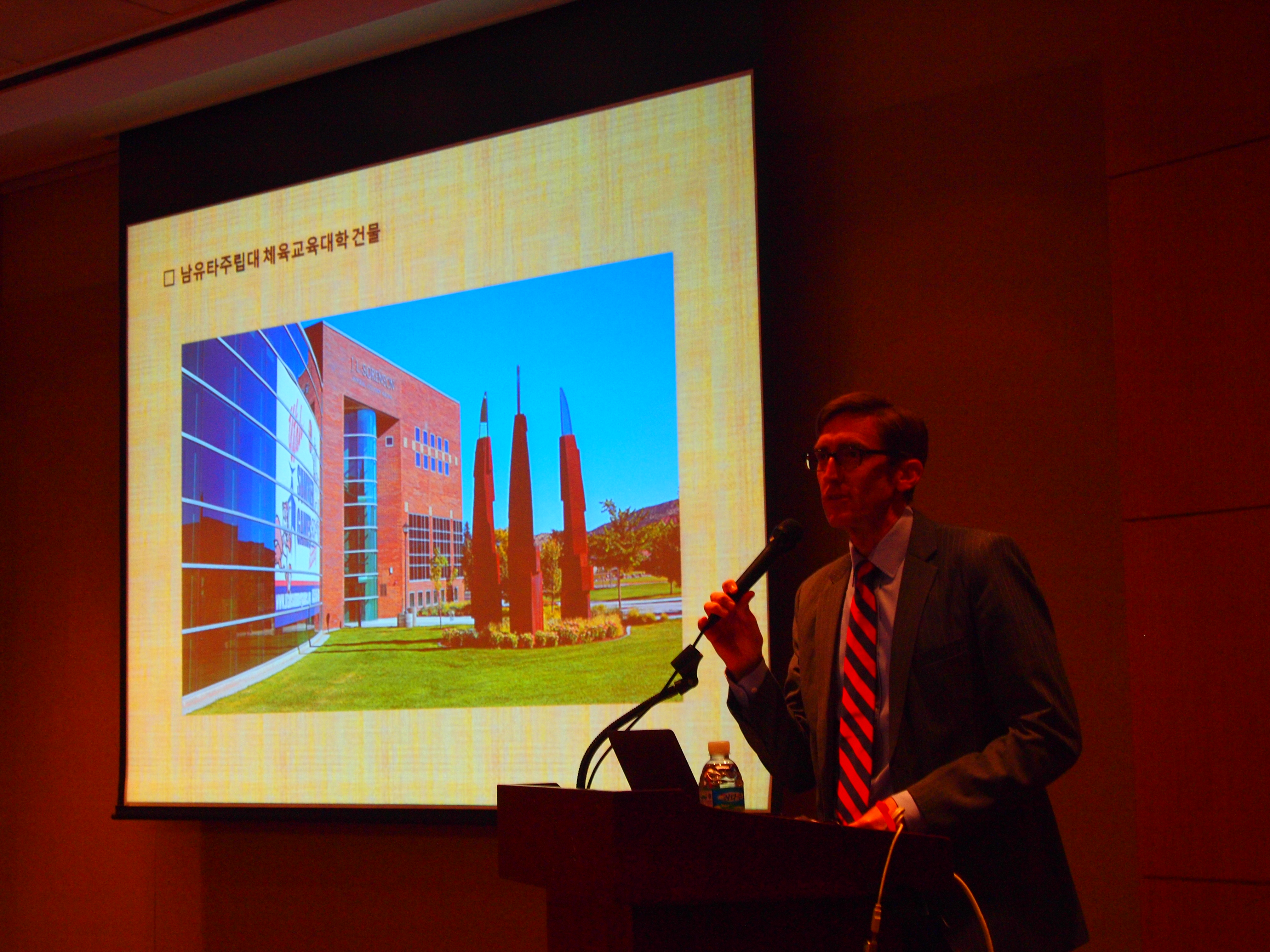 남유타주립대 Dr.Stephen Allen 부총장님께서 남유타주립대 소개 및 인사말씀을 전하는 모습입니다.